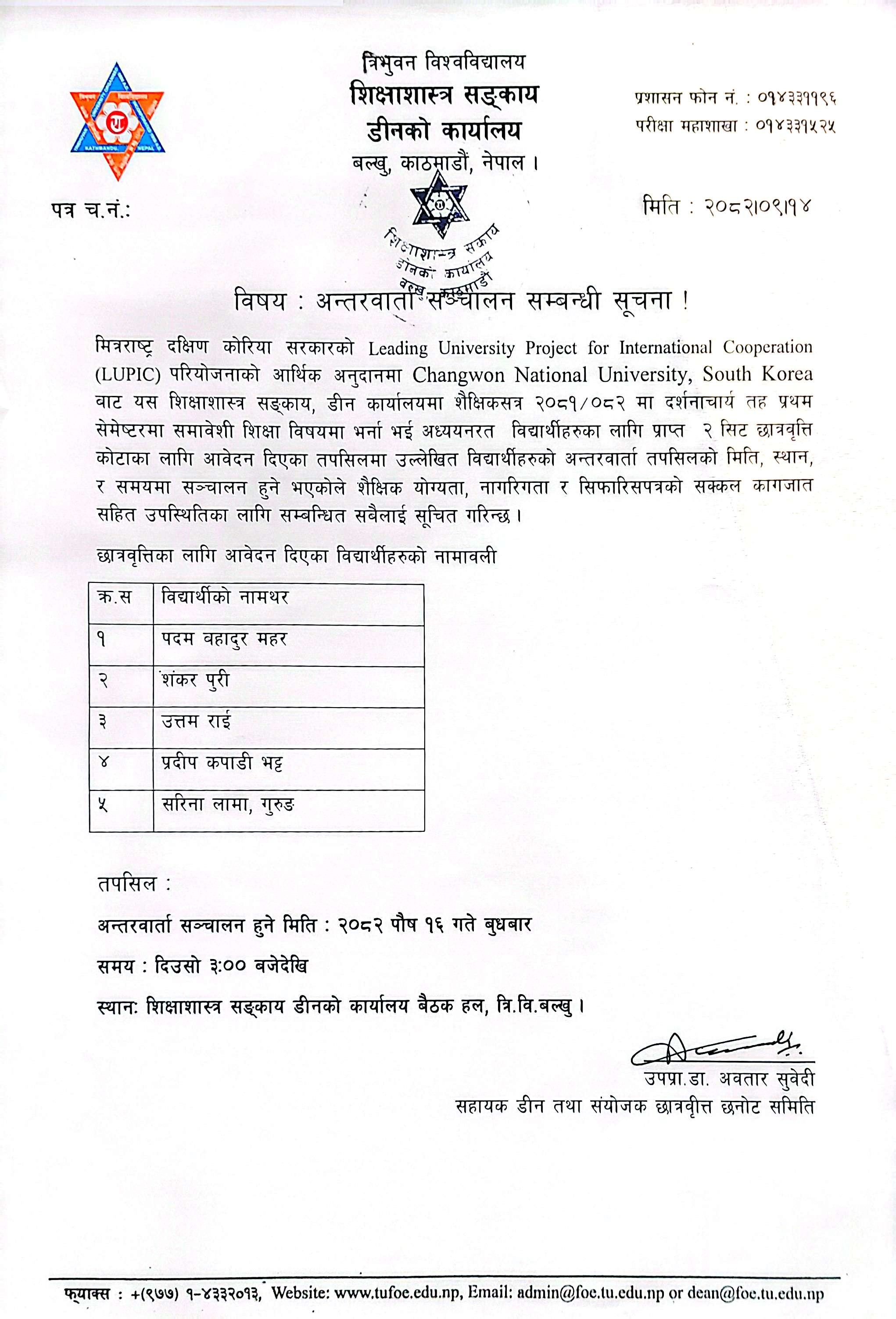 अन्तर्वार्ता सम्बन्धी सूचना ।